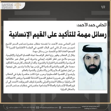 In his statement, lawyer Hamad Al-Ahmed confirmed that Al-Riyada Office will continue its efforts to provide the best legal services to its clients, while ensuring the promotion of values of understanding and cooperation within the legal sector, contributing to the development of legal practice in the country.